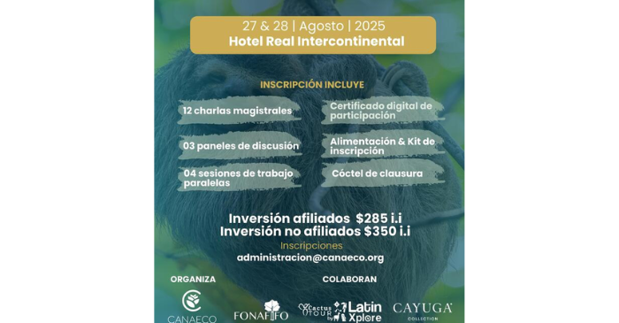 Este evento se llevará a cabo el 27 y 28 de agosto en el Hotel Real Intercontinental de San José, Costa Rica. En este evento será posible escuchar la voz viva sobre proyectos y programas de CANAECO y otras organizaciones aliadas en el sector turístico. Contará con representantes de los cinco continentes que nos recordarán las bases del turismo sostenible y los retos generacionales a los que nos enfrentamos. También habrá espacios donde se hablará de las amenazas al turismo sostenible. En esta conferencia además habrá pláticas sobre casos de éxito en el mundo con la intención de abrir los ojos al público y que estos se animen a buscar recrear esos casos en su entorno. Adicionalmente, se busca hacer un llamado a la acción con base en los retos y oportunidades para el sector, con el fin de crear un manifiesto de la Convención P3 donde se establezcan compromisos y objetivos y será entregado a las autoridades de Costa Rica. Sin duda esta invitación para escuchar a más de 25 expertos tanto nacionales como internacionales está completo con la oportunidad de networking y espacios culturales que ofrecen, ya que tienen la firme convicción que a través de la cultura también se adopta un modelo más sostenible y se permite mostrar al mundo lo que significa la cultura costarricense. Esta experiencia cuenta con un precio especial para afiliados de Cámara Verde y pueden consultar más información en Conferencia P3 – Canaeco para formar parte de este evento.